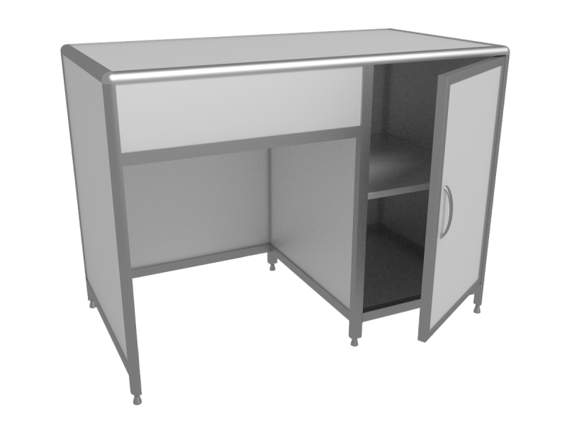 Стол лабораторный СЛ 1-04 с каркасом из анодированного алюминиевого профиля, заполнение которого возможно в двух вариантах.