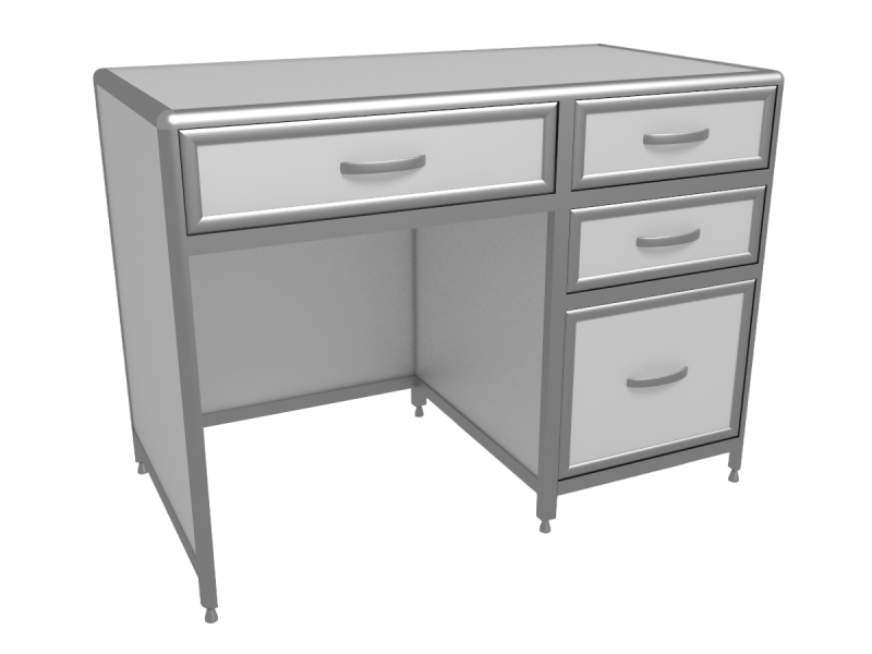 Стол оснащен тумбой расположенной справа которая имеет три выдвижных ящика на роликовых направляющих. Под столешницей выдвижной ящик на роликовых направляющих. Стол устанавливается на регулируемые опоры, позволяющие компенсировать неровности полового покрытия.