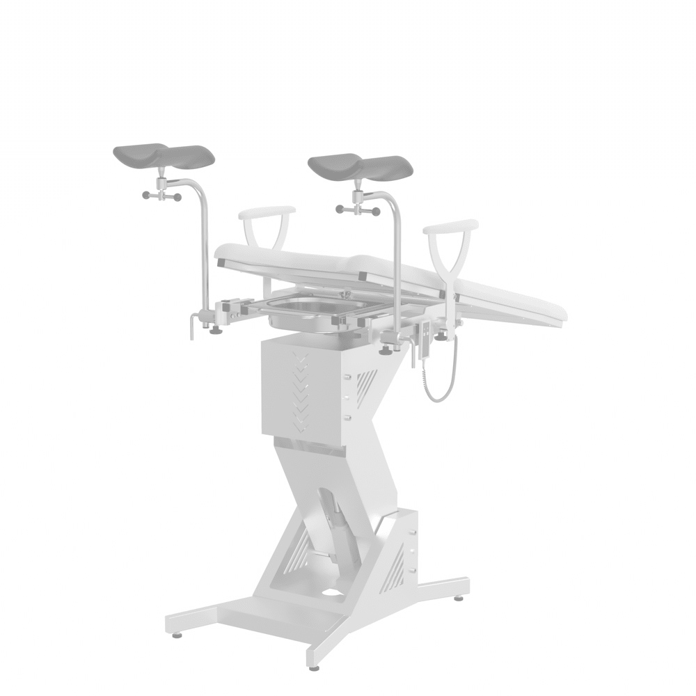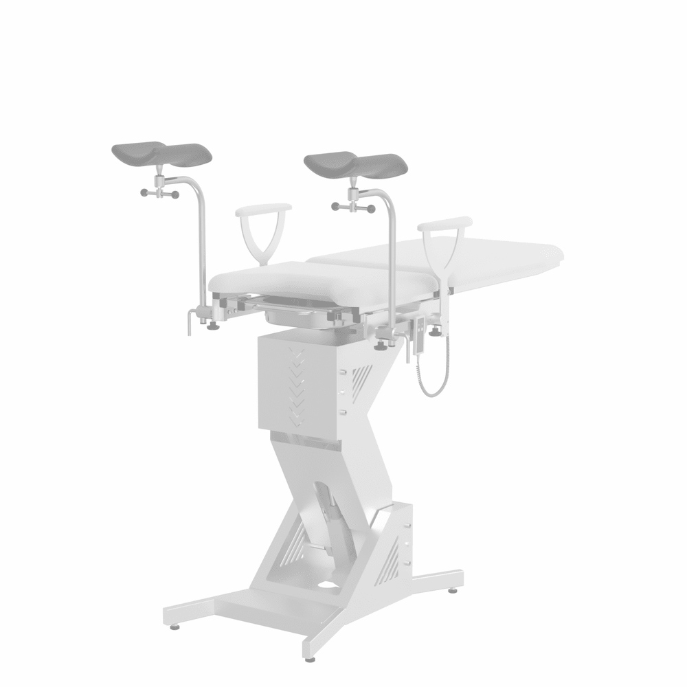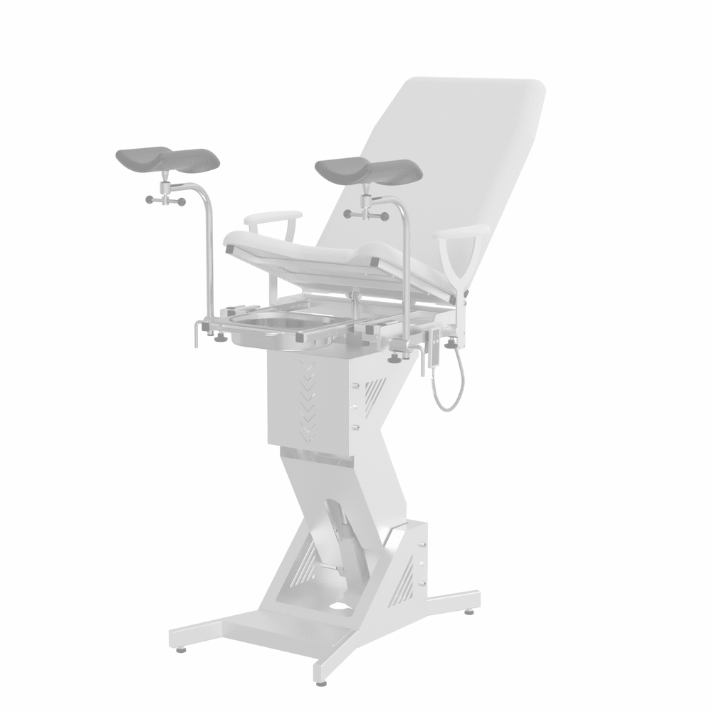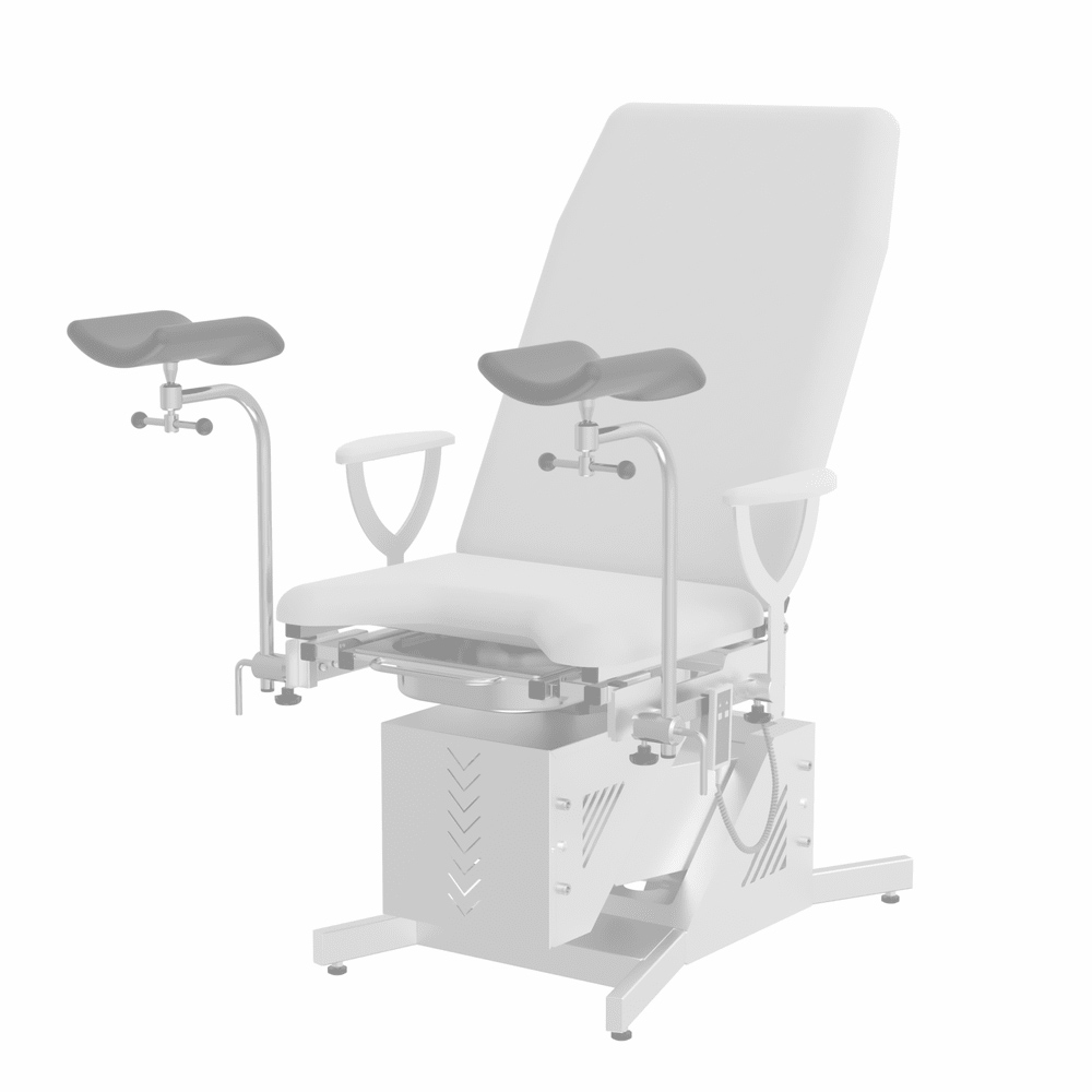 - Подколенные упоры, регулируемые по высоте и углу наклона, выполнены из интегрированного пенополиуретана, эргономичные по форме, легко обрабатываются санитарными растворами, не требуют дополнительных чехлов.