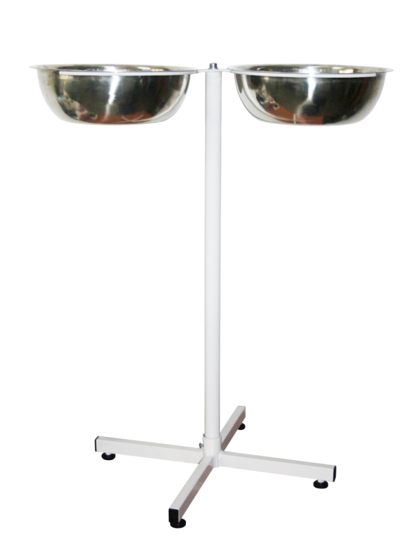 - Подставка под таз в комплекте с двумя тазами ПТ-2 изготовлена из стального профиля прямоугольного сечения и круглой трубы, покрытых экологически чистой эпоксидной полимерно-порошковой краской белого цвета, устойчивой к регулярной обработке всеми видами дезинфицирующих и моющих растворов. Верхняя часть подставки изготовлена из нержавеющей трубы круглого сечения