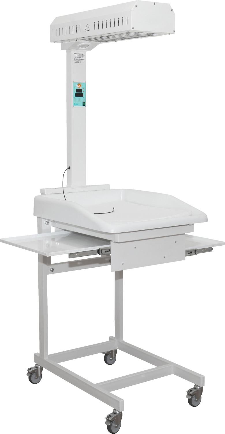 - Обогрев новорожденного производится инфракрасным излучателем.