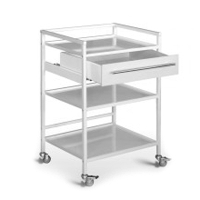 Стол манипуляционный со столешницей из нержавеющей стали, выдвижным ящиком и двумя полками.