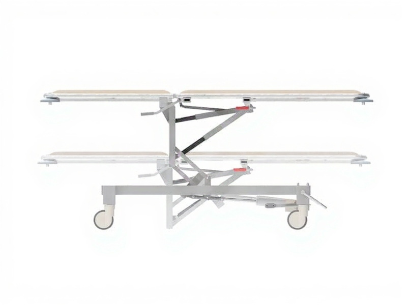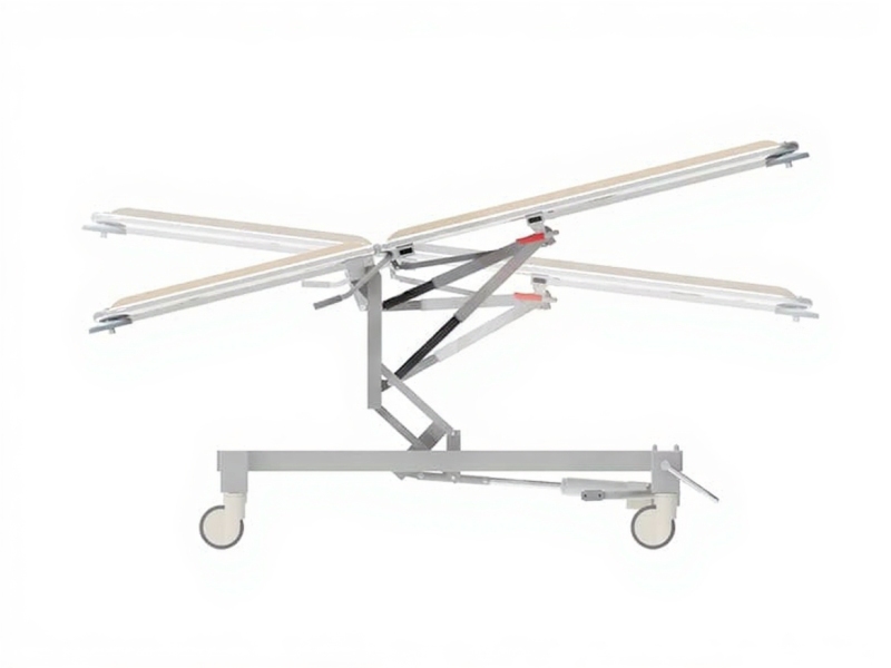 Оснащен гидравлическим механизмом подъема и опускания ложа, а также наклоняется в положения Тренделенбург и Антитренделенбург.
