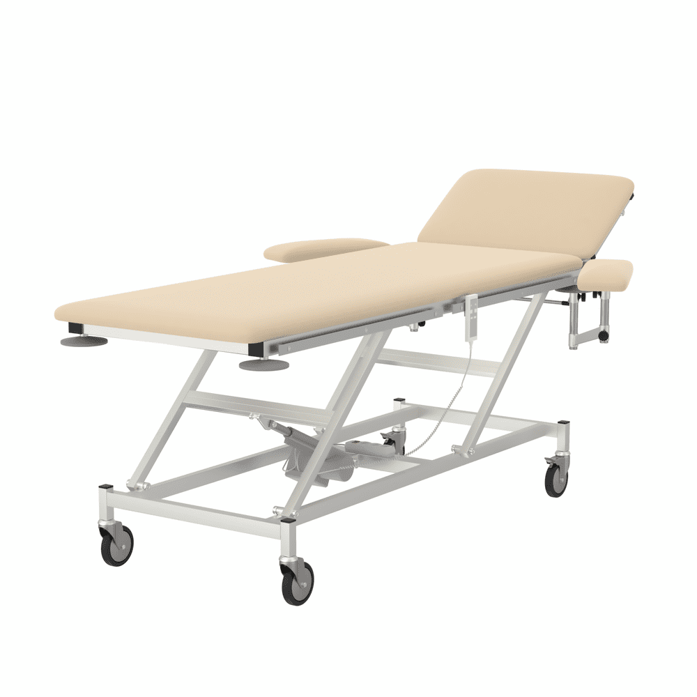 - Подлокотники регулируются по высоте и устанавливаются по бокам ложа или возле подголовника методом поворота. Ход регулировки по высоте передних подлокотников стола 300 мм;
