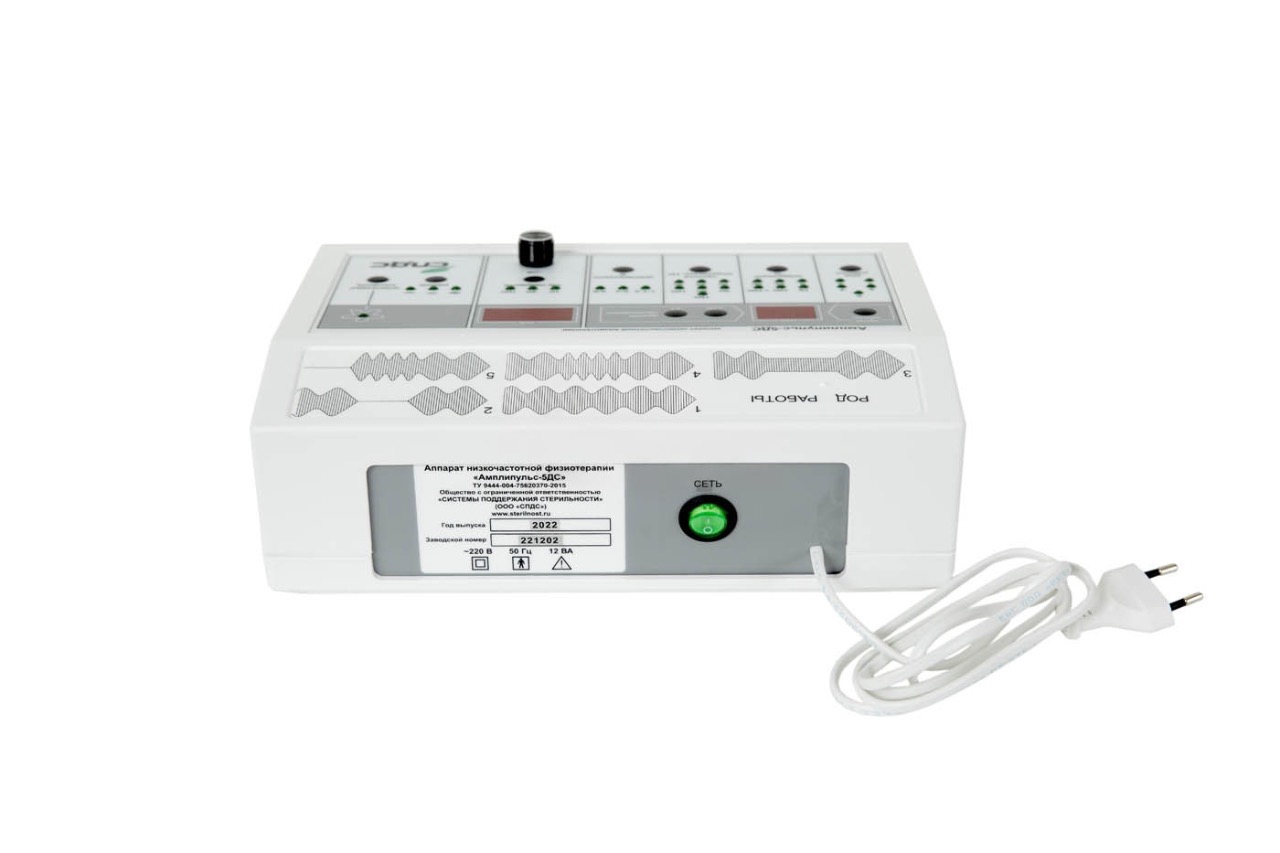 Аппарат низкочастотной физиотерапии СПДС Амплипульс-5ДС предназначен для лечебного воздействия модулированными синусоидальными токами звуковой частоты с целью обезболивающего и противовоспалительного действия.