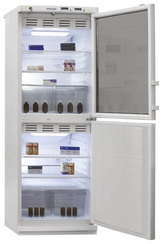 Холодильник фармацевтический ХФД-280 ПОЗИС с тонированной стеклянной и металлической дверью предназначен для хранения лекарственных препаратов, вакцин, реагентов и биологических образцов при температуре от +2°C до +15°C в помещениях клиник, больниц, аптеках, лабораториях.