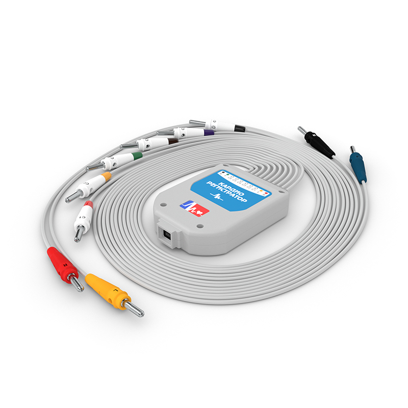 - Регистратор КРП-01 представляет собой отдельный конструктив с встроенным 10-электродным кабелем и разъемом для подключения USB кабеля с питанием от системного блока компьютера или смартфона