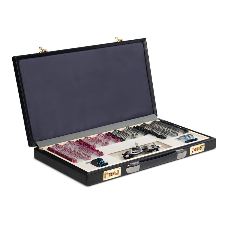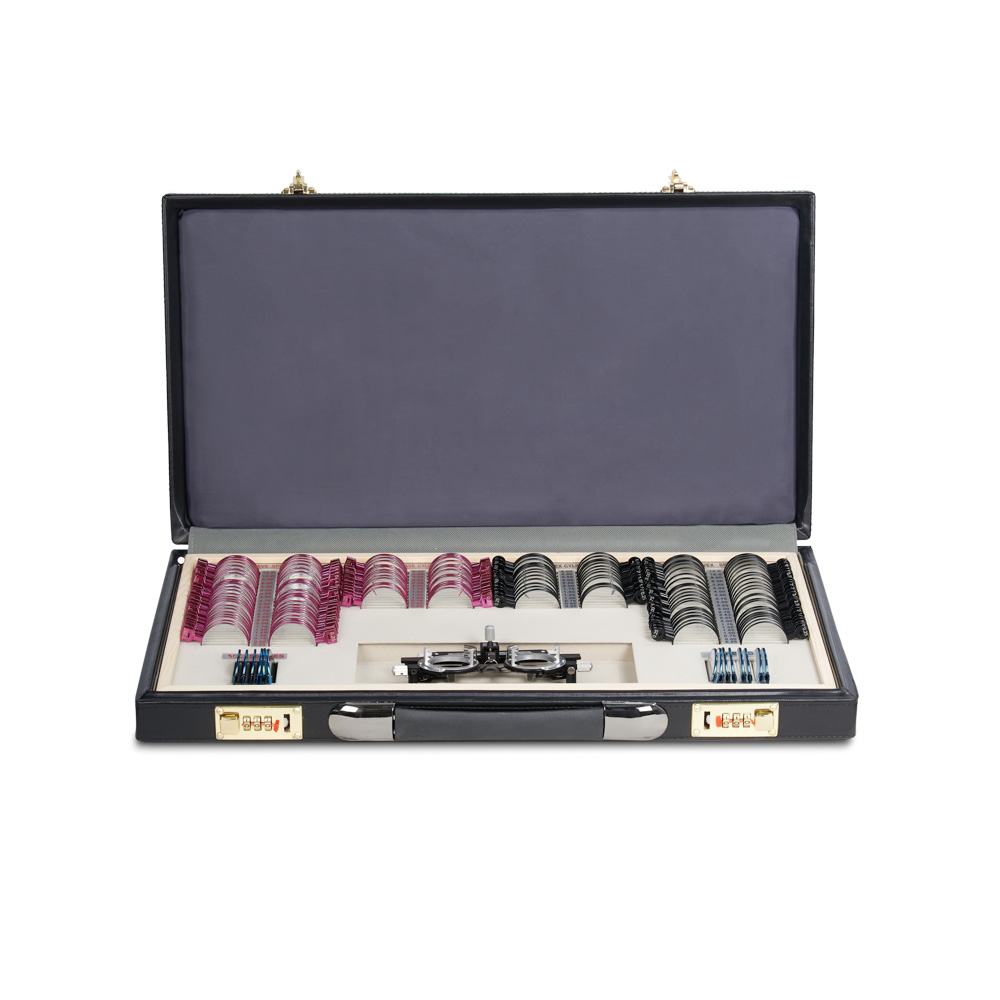 - Набор линз размещен в специальный кейс из кожзаменителя, с тканевой обивкой внутри, в качестве запирающего устройства используется кодовый замок
