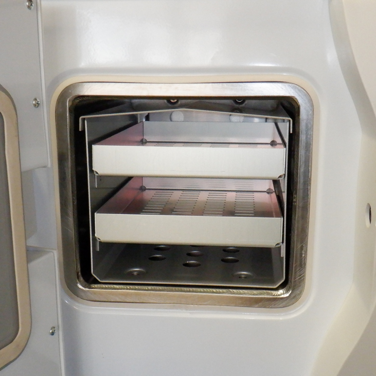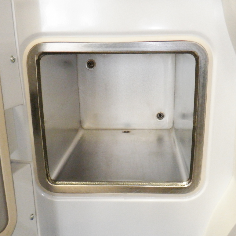 - Корпус выполнен из металла с порошковым покрытием, камера — из коррозионностойкой нержавеющей стали, прямоугольного типа