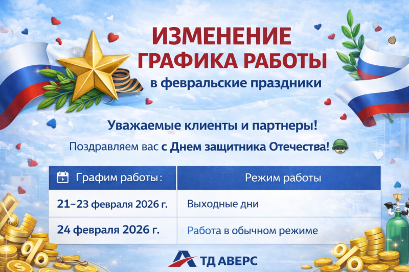 Информируем вас об изменении режима работы компании в период праздничных дней, посвященных Дню защитника Отечества.